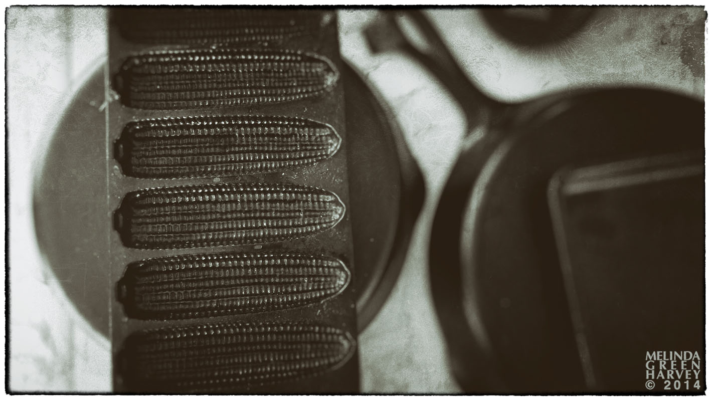 I can’t recall why I ended up in Wimberley, or how I decided to check out the huge monthly flea market (over 450 vendors). But I guess it was worth the five bucks to park because I saw this fantastic cornbread pan, which is just like the kind my mom used. As an added benefit, someone (the vendor? a previous shopper?) had made this artful arrangement of cast iron pans.