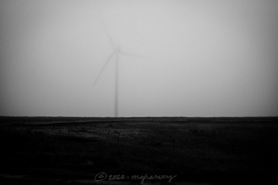 Here’s our situation, conveniently located within one photograph: an almost-gone farmhouse and so many wind turbines I can’t even count them.