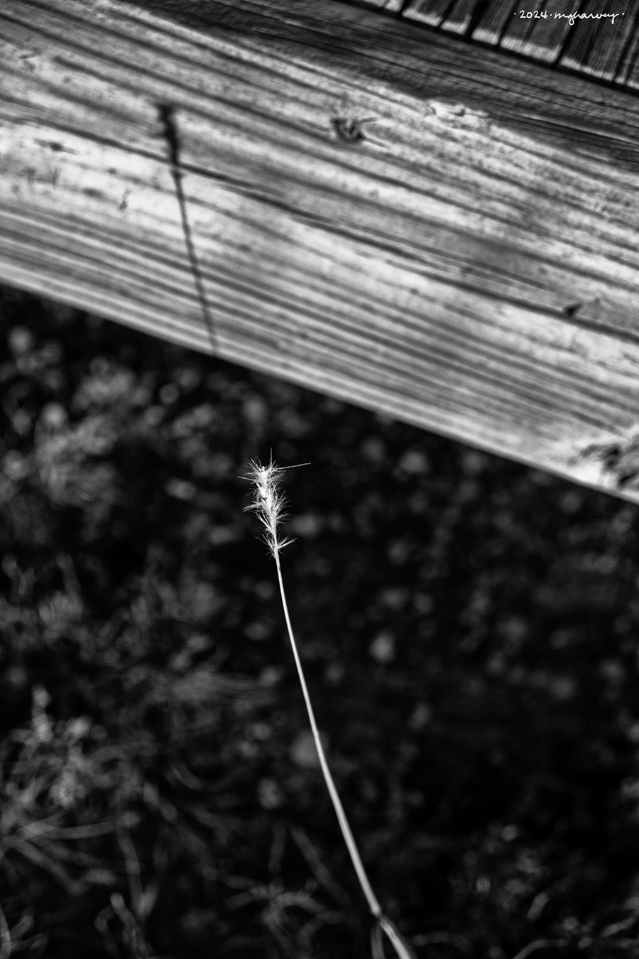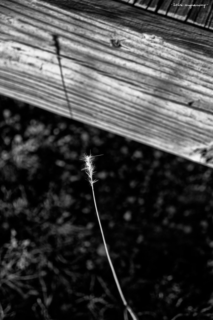 Out at my place on the rim of a canyon*, it’s usually too windy to catch a photo like this – generally these thin stalks of grass are whipping around at blur-inducing rate.